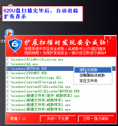 - 可准确查杀多种感染型病毒和木马,精准识别(依赖病毒库)